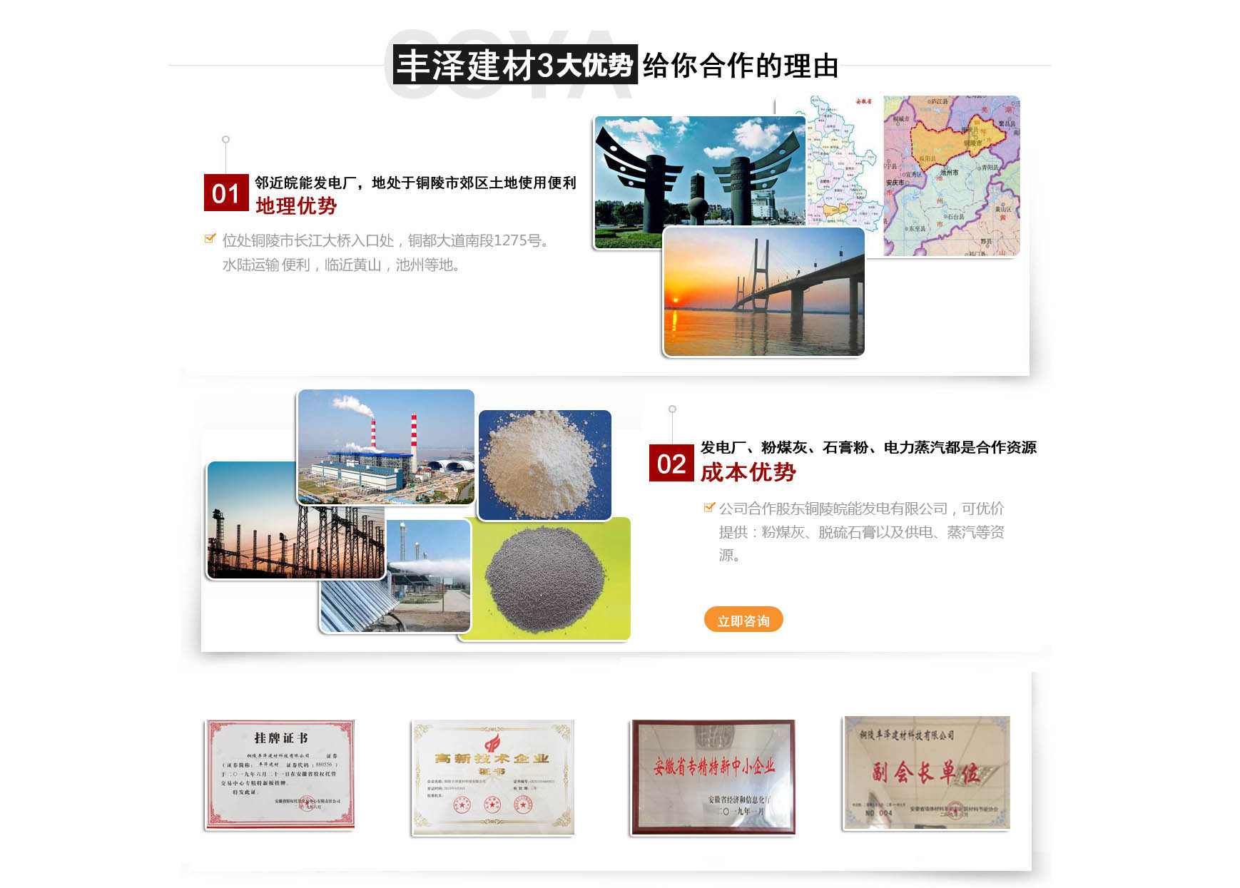 銅陵豐澤建材科技有限公司成立于2007年2月,坐落于銅都大道南段,占地4萬平方米,公司注冊資金1000萬元,現(xiàn)有職工百余人,是一家與皖能發(fā)電公司合作,專業(yè)從事電廠粉煤灰開發(fā)利用的高新科技企業(yè),現(xiàn)擁有一條年產(chǎn)30萬立方米蒸壓加氣混凝土全自動生產(chǎn)線。 蒸壓加氣混領(lǐng)土(英文名Autoclaved aerated comcrete),也稱AAC,是以砂、粉煤灰等硅質(zhì)材料和石灰、水泥等鈣質(zhì)材料為主要原料,摻加鋁粉為發(fā)氣劑,進行生產(chǎn)的新型墻體材料。是我國推廣應用最早,使用最廣泛,技術(shù)最完整的輕質(zhì)保溫墻體材料之一,自問世以來,始終方興未艾,備受推崇。
